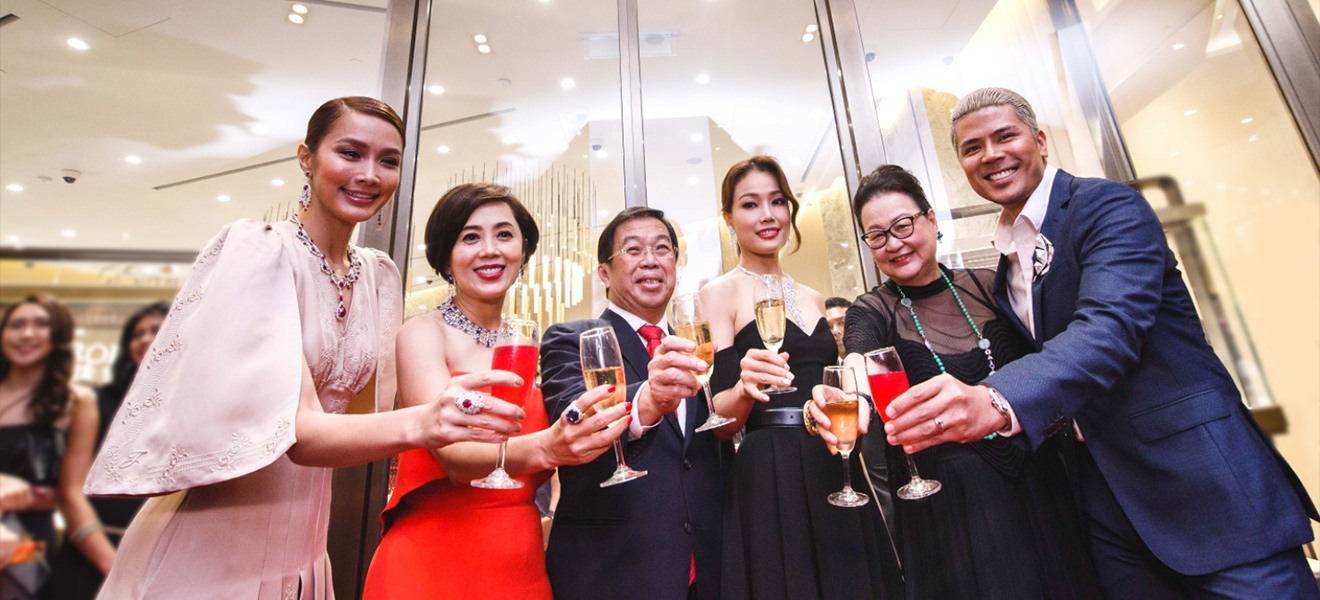 香港知名歌手容祖儿、古巨基、时任瑞士驻香港特别行政区总事Mrs. Rita Hämmerli-Weschke等人出席英皇钟表珠宝位于1881 Heritage新店的开幕活动,庆祝“Patek Philippe专门店”˙“Chopard专门店”˙“英皇珠宝全新形象店”隆重开业。